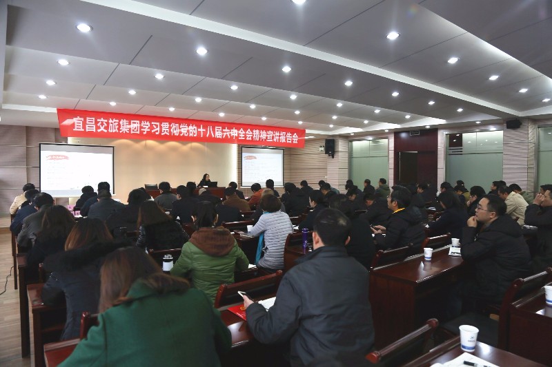 11月23日,宜昌交旅集团召开党的十八届六中全会精神宣讲会,邀请市国资委党委委员、总经济师周蕾同志作宣讲报告。集团党委书记、董事长柳兵出席报告会并作部署讲话,集团党委副书记、总经理鲍希安主持报告会。