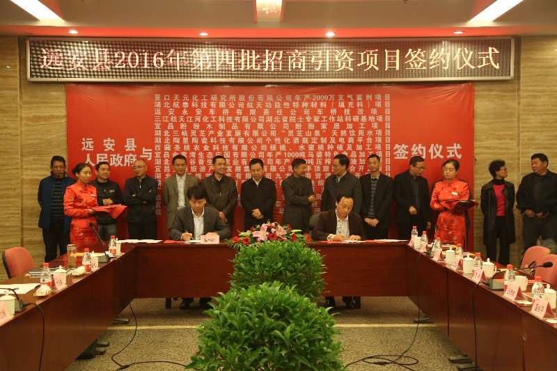 2016年10月28日,远安县2016年第四批招商引资项目签约仪式隆重举行,宜昌交旅集团与远安县政府就太平顶旅游综合开发项目投资协议正式签约。集团总经理鲍希安出席项目签约仪式。