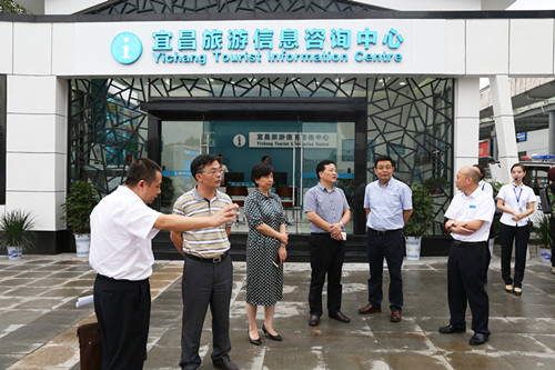 随后,验收评估组领导经发车区上车至位于宜昌东站的旅游信息咨询中心进行现场考察,对咨询中心公益性的官方平台背书、深度融入地方特色高辨识度外观形象以及标准化的旅游综合服务给予高度肯定。