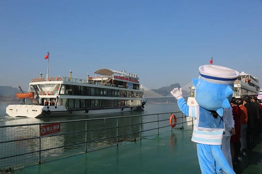 2月19日上午,伴随着悠扬的汽笛声,“长江传奇”号豪华游轮从宜昌港九码头离岸远航。