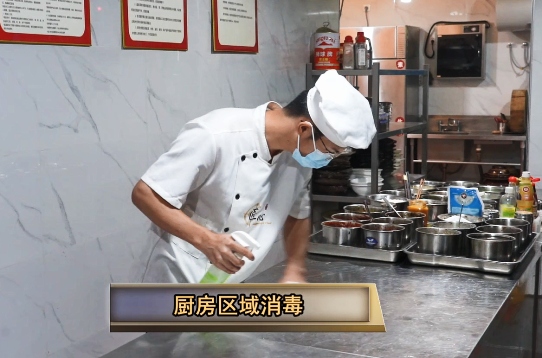 厨房区域早晚清洁消杀、餐具高温消毒,