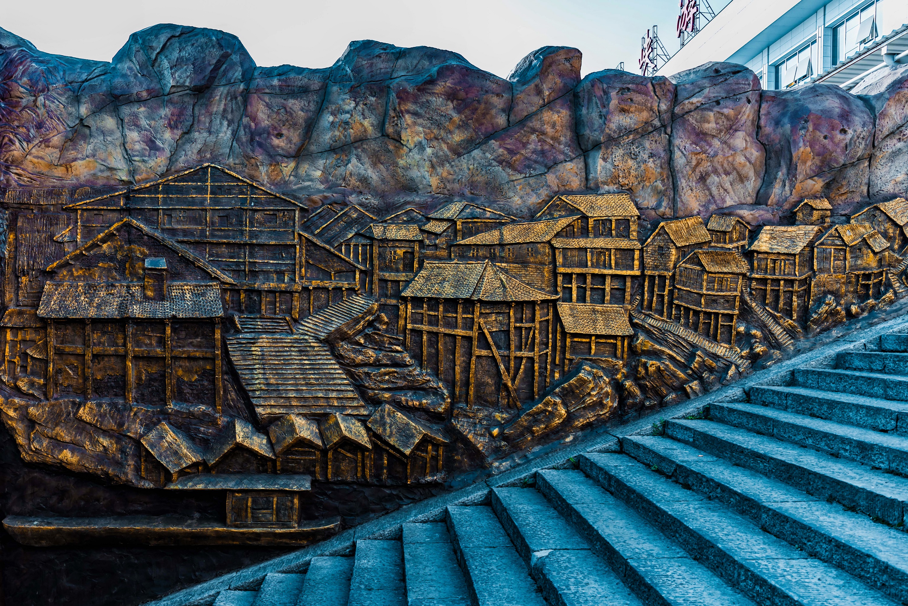 在九码头登船处,栩栩如生的浮雕文化墙和铜雕雕塑,再现了这座宜人之城、昌盛之地悠久的峡江文化、码头文化和纤夫文化。游客至此,不仅可以领略美景、亲近自然,还能触摸历史、感知文化、品味乡愁。