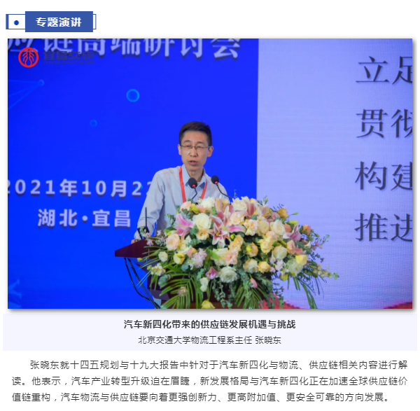 10月22日,中物联汽车物流分会“2021汽车新四化与供应链高端研讨会”在湖北省宜昌市召开。中物联副会长贺登才,中物联汽车物流分会执行副会长马增荣,市政府党组成员李向东出席会议并致辞。会议由中物联汽车物流分会常务副秘书长宋夏虹主持。
