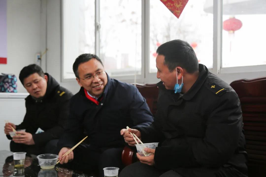 “小公交折射大民生,要用心用情打造人民满意公交。”来到公交集团点军停保场,殷俊看望慰问值班值守人员,对他们“舍小家、为大家”的奉献精神给予肯定。来到宜昌东站公交回车场已是傍晚时分,伍家分公司为当班驾驶员煮好了热气腾腾的水饺。殷俊与大家围坐在一起,吃饺子、话家常、迎新年,叮嘱大家要做好自身防疫,引导乘客落实防疫要求、安全低碳出行,现场气氛温暖而热烈。