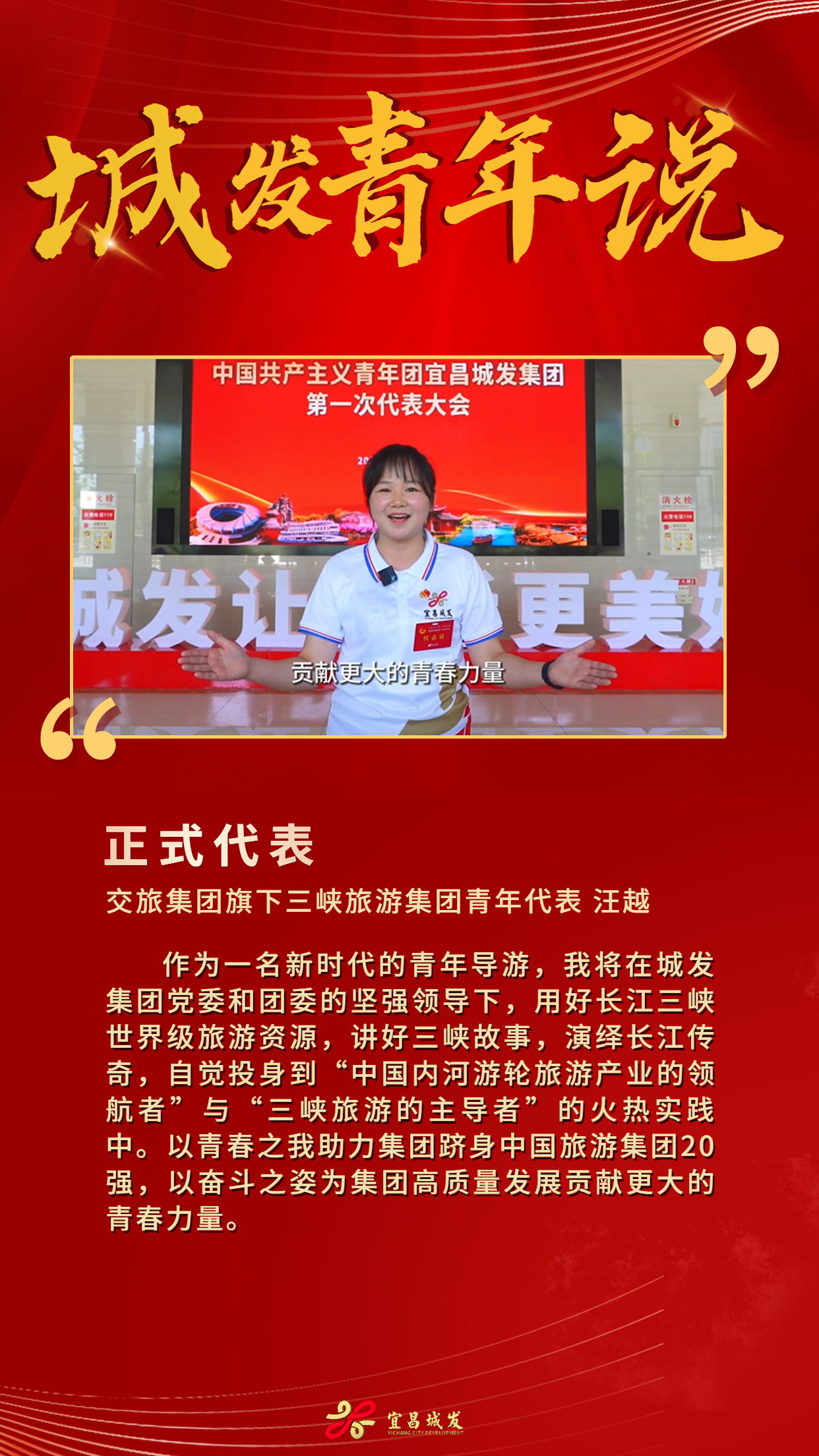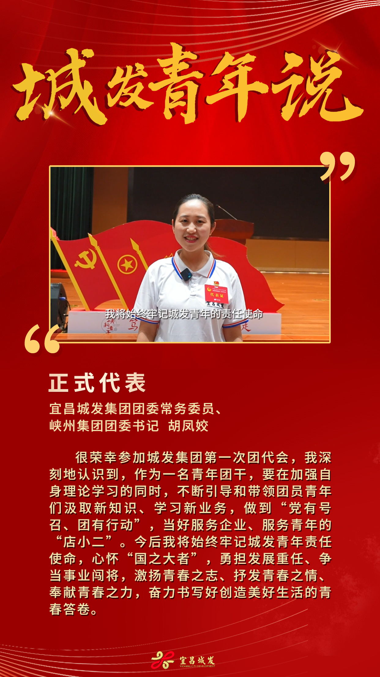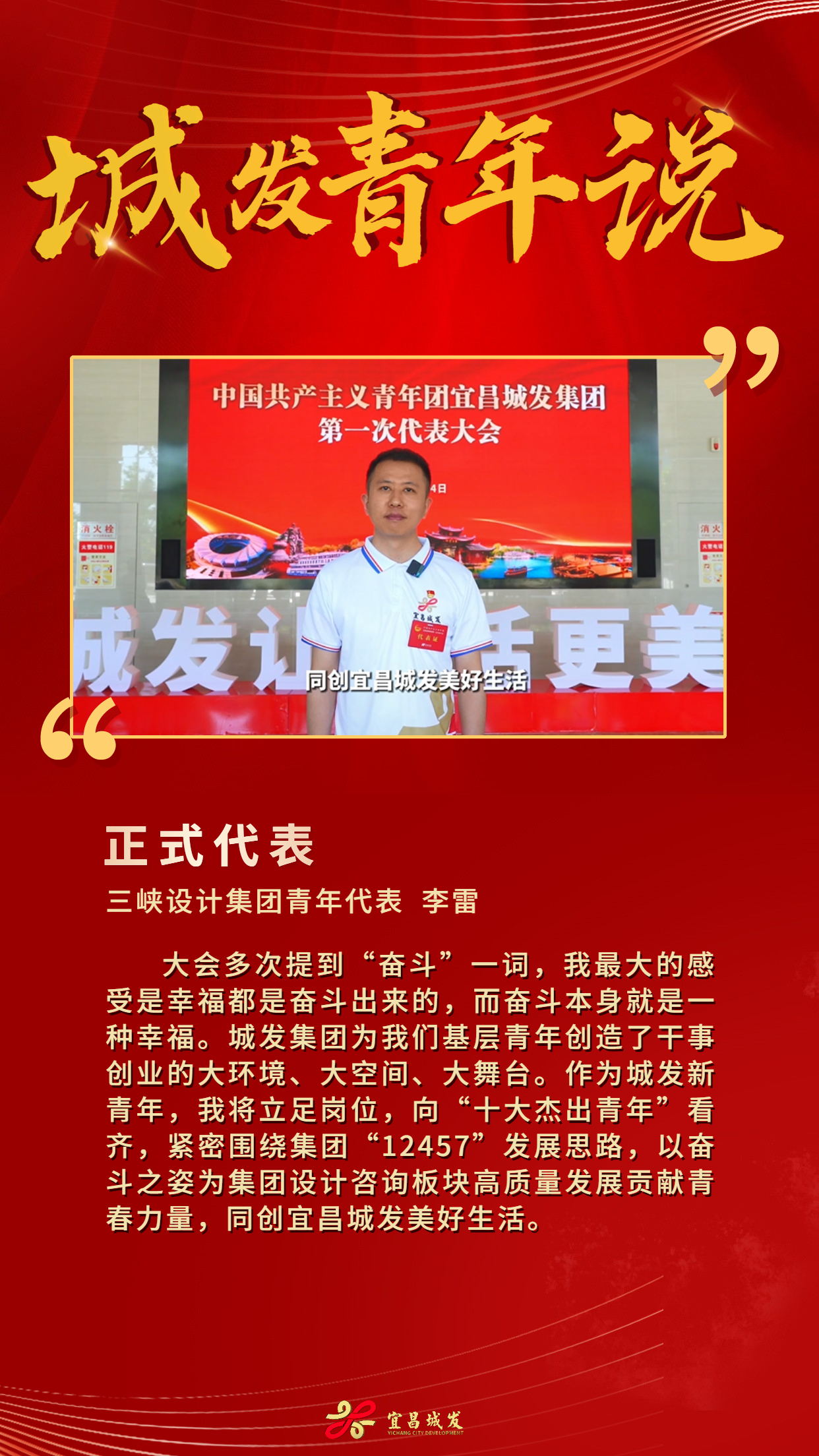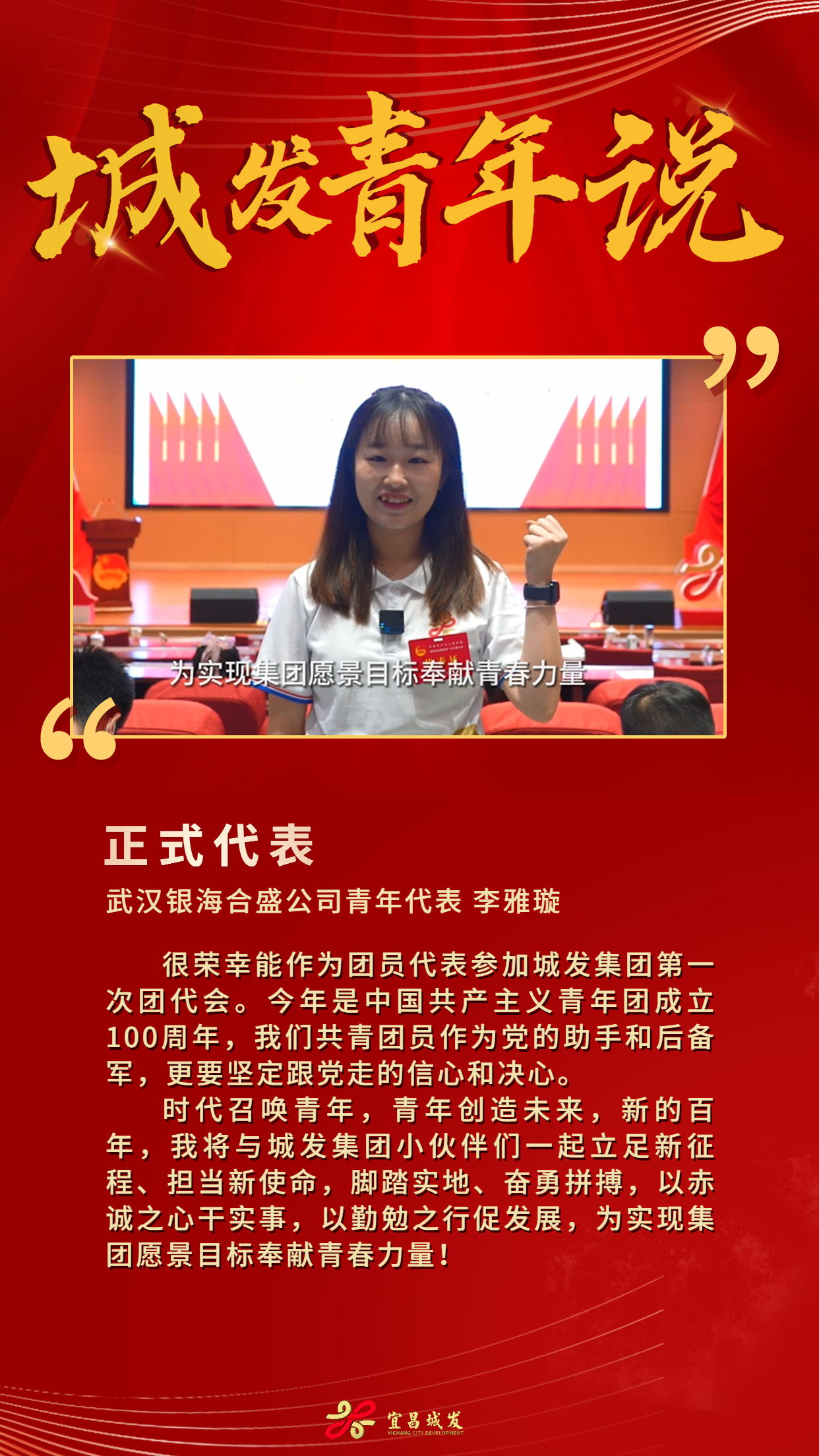 5月4日,宜昌城发集团一届一次团代会胜利召开,220名青年代表受邀出席。他们以奋进之势,唱响青春之歌,让我们来听听他们的青春宣言!
