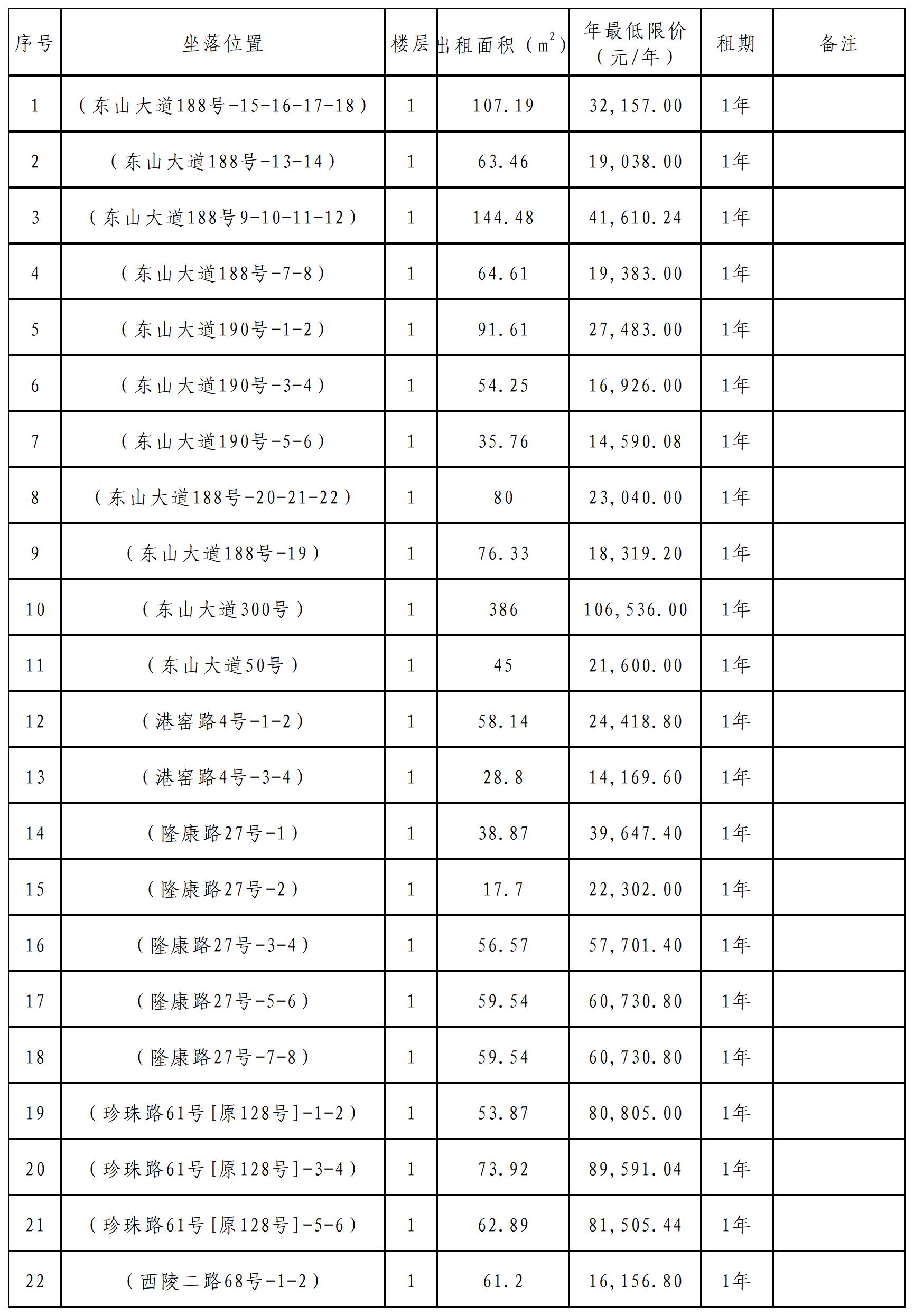 宜昌交旅投资开发有限公司所属位于东山大道、隆康路、珍珠路等区域22处房产现对外进行公开招租,欢迎符合条件的承租户踊跃参与竞价,公开招租事项如下: