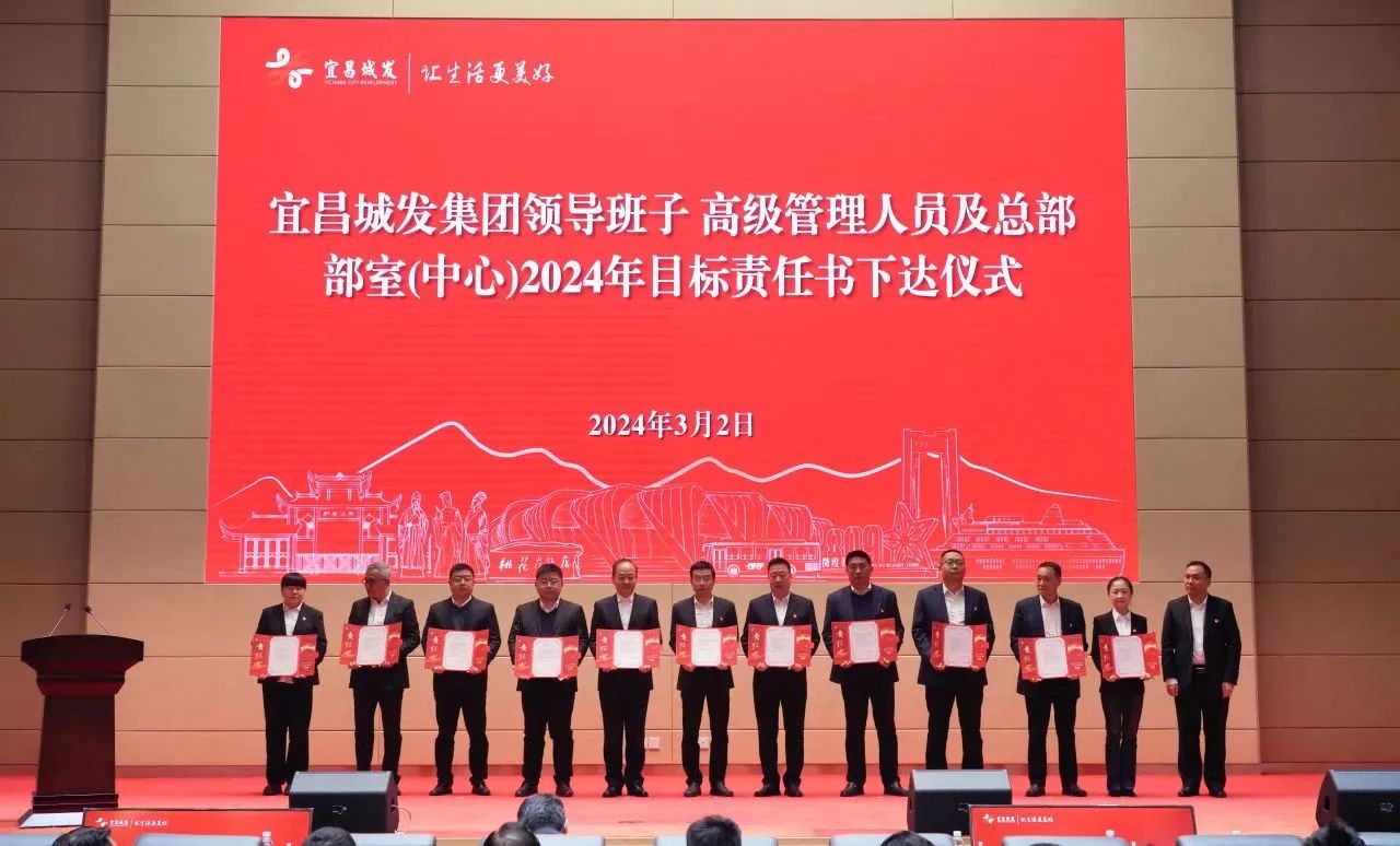 3月2日,宜昌城发集团领导班子成员、高级管理人员及总部部室(中心)2024年工作目标责任书下达在求索众创中心举行。集团党委书记、董事长殷俊出席会议并讲话。集团党委副书记、工会主席刘仁主持仪式。