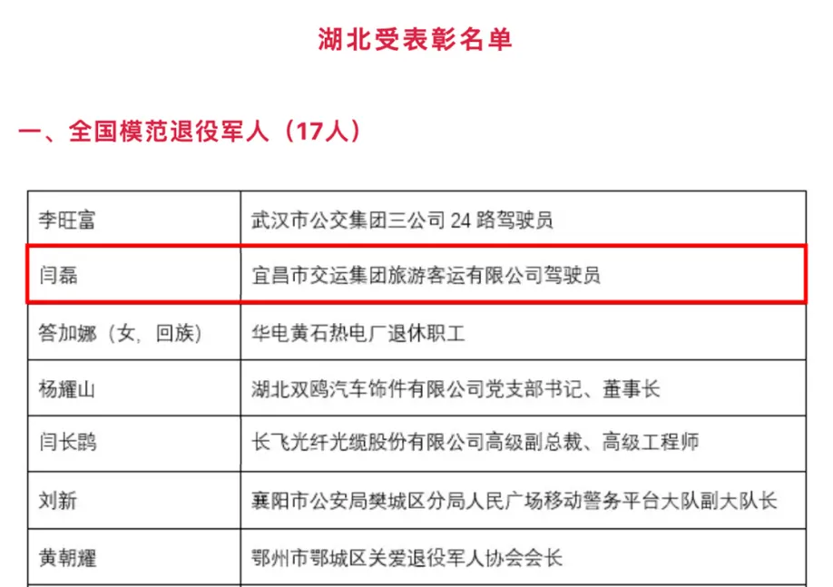 闫磊,2002年入伍,2014年退役后投身宜昌旅游运输行业,现为国产无码