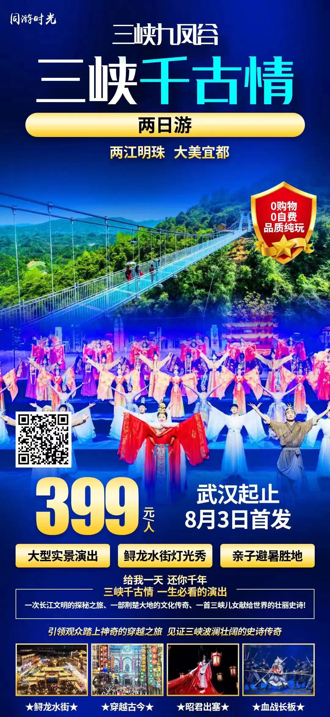 三峡九凤谷+三峡千古情武汉起止两日游仅399元!