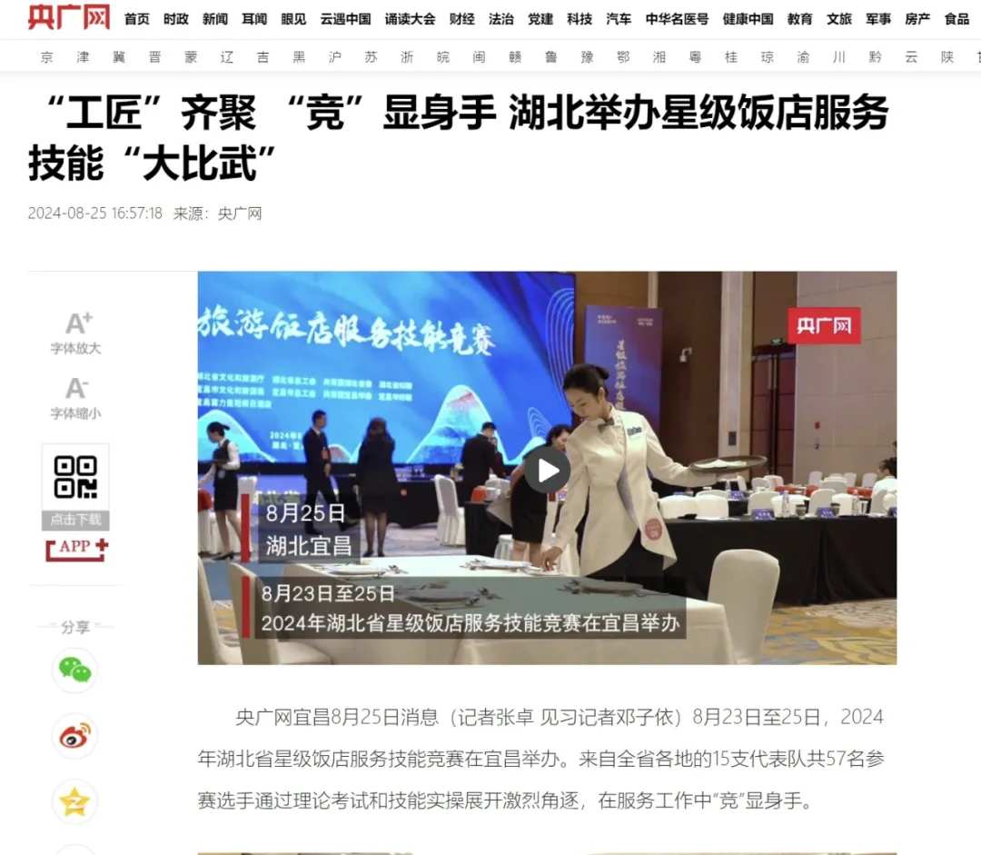 8月24日,省文化和旅游厅、省总工会、团省委、省妇联共同主办的2024年湖北省星级旅游饭店服务技能竞赛在宜昌举行,来自全省各地的15支代表队共57名参赛选手通过理论考试和技能实操展开激烈角逐。
