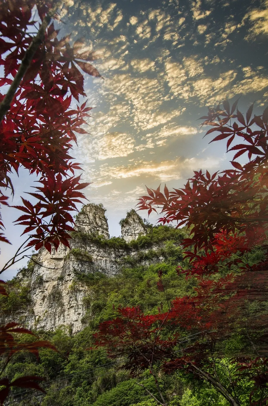 公路绵延在七彩山林,百井仙山之上是远安太平顶宁静的秋风与落叶。