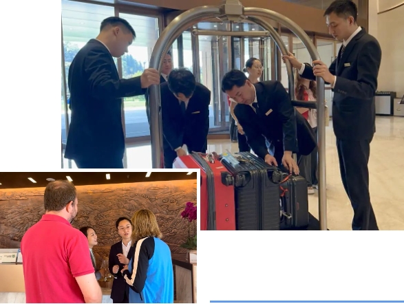 点军桃花岭饭店从氛围布置到菜牌英文翻译、指引立牌都融入了大坝学会元素,客房配备了专用欢迎辞及湖北三峡文旅集团宣传资料,会议客人到店时安排人员指引,服务周到热情。管理人员全程督导、24小时轮班值守,增加工程人员和客房夜班人员,确保宾客有求必应。
