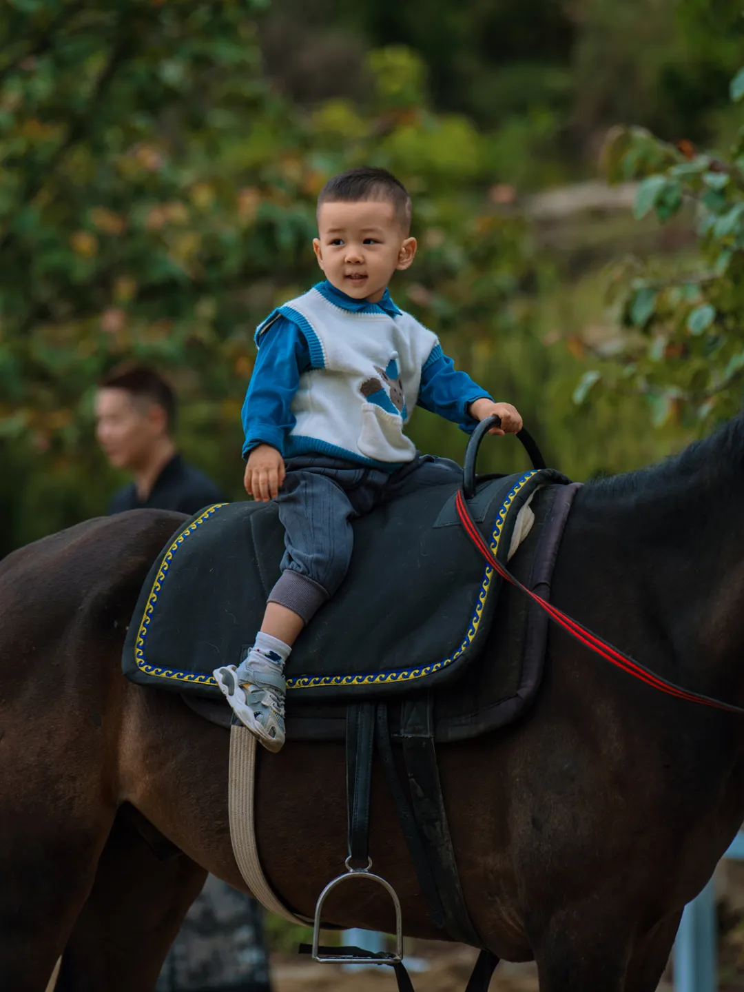 看,就连2岁的小宝宝也不愿放过骑大马的好机会!凹造型拍大片这种事要从小抓起!