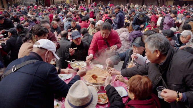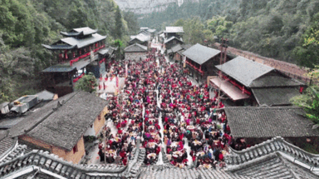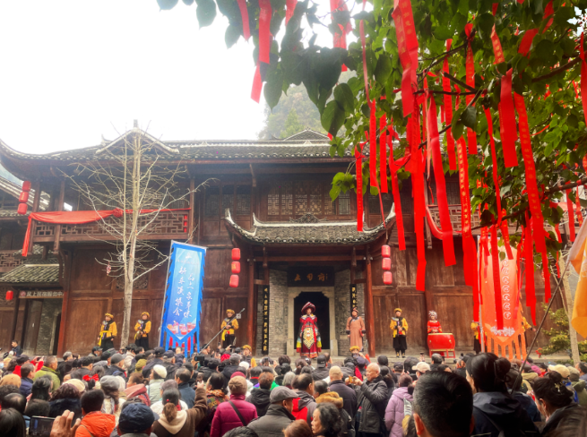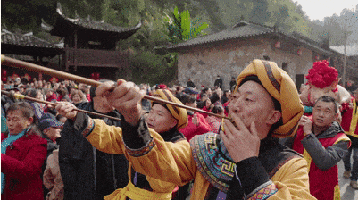 鸣炮、敲锣、吹唢呐,热闹非凡