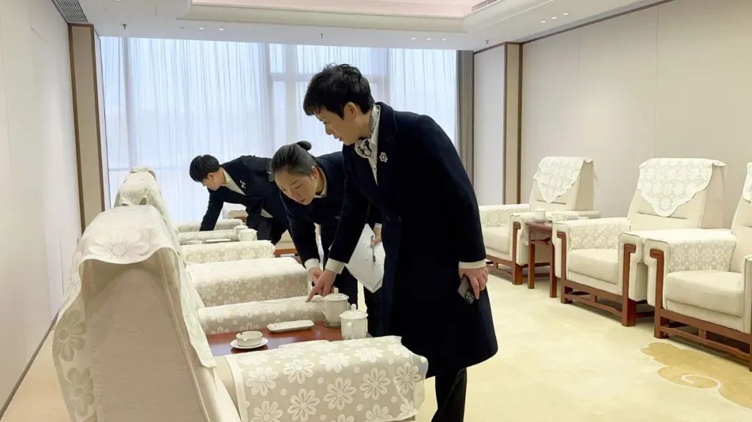宾馆全体员工团结一心,开展全面且深入的卫生大扫除,窗明几净、不留死角,以整洁、卫生、舒适的环境迎接重要接待任务。