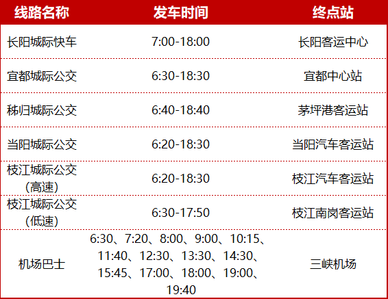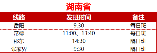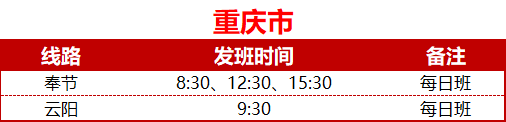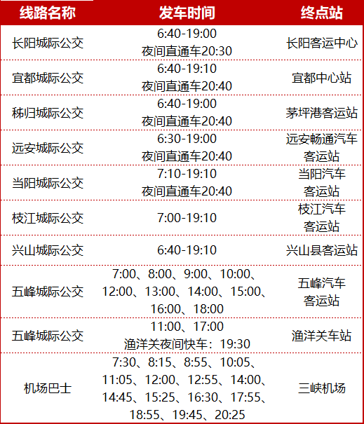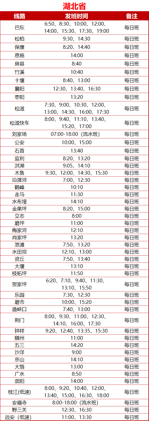 (河南、广东、山东、福建等详细班车表见湖北三峡文旅公众号)