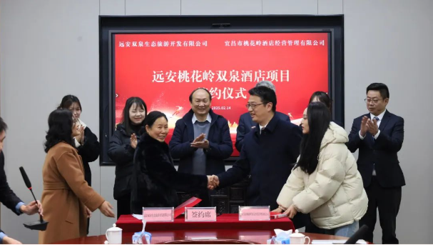 2月14日,三峡文旅集团所属桃花岭酒店经营管理公司与远安双泉生态旅游开发有限公司举行“远安桃花岭双泉酒店项目”运营托管项目签约仪式,标志着桃花岭酒管公司将管理触角成功延伸到了远安县,品牌价值及酒店运管能力进一步提升。