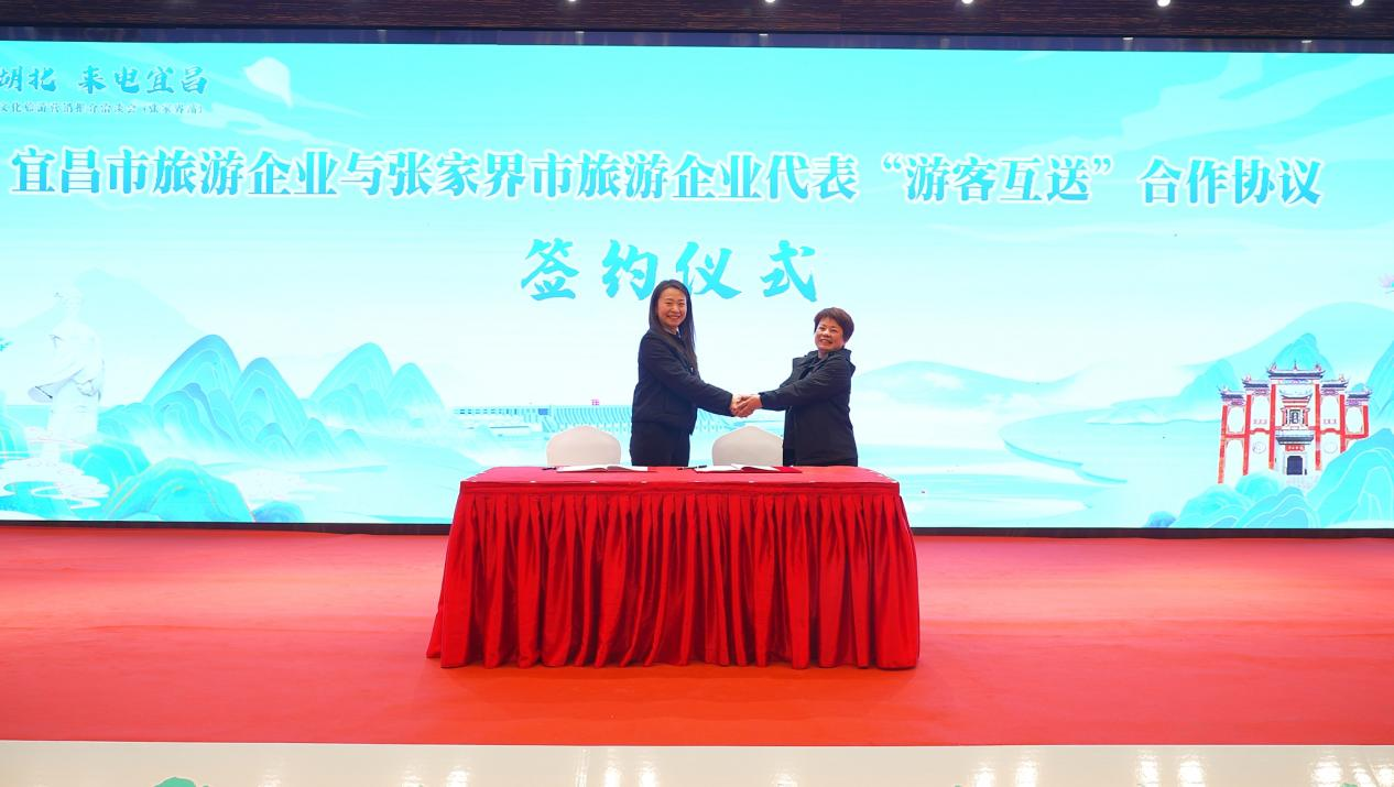 3月10日,宜昌市文化和旅游局携三峡文旅集团、昭君旅游、湖北文旅宜昌集团、三峡大坝旅游区等30余家重点文旅企业以“知音湖北 来电宜昌”为主题,在张家界市举办2025年宜昌文旅营销推介洽谈会。张家界市文化旅游广电体育局携60余家文旅企业代表、媒体代表应邀参加活动,双方共叙友情、共商合作、共推线路、共拓市场。