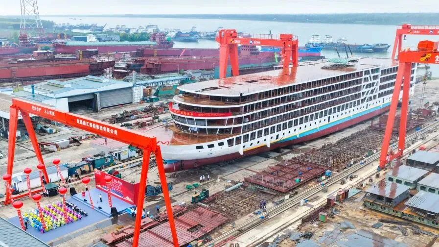 江迎揽月,势启新程。9月12日,由湖北三峡文旅集团旗下国产无码 投资建造的首艘长江省际度假游轮“长江行·揽月”在枝江鑫汇船厂顺利吉水,这标志着该游轮建造取得关键性进展,后续将转入舾装、软装、设备调试以及试验、检验等环节,全力冲刺2026年首航目标。