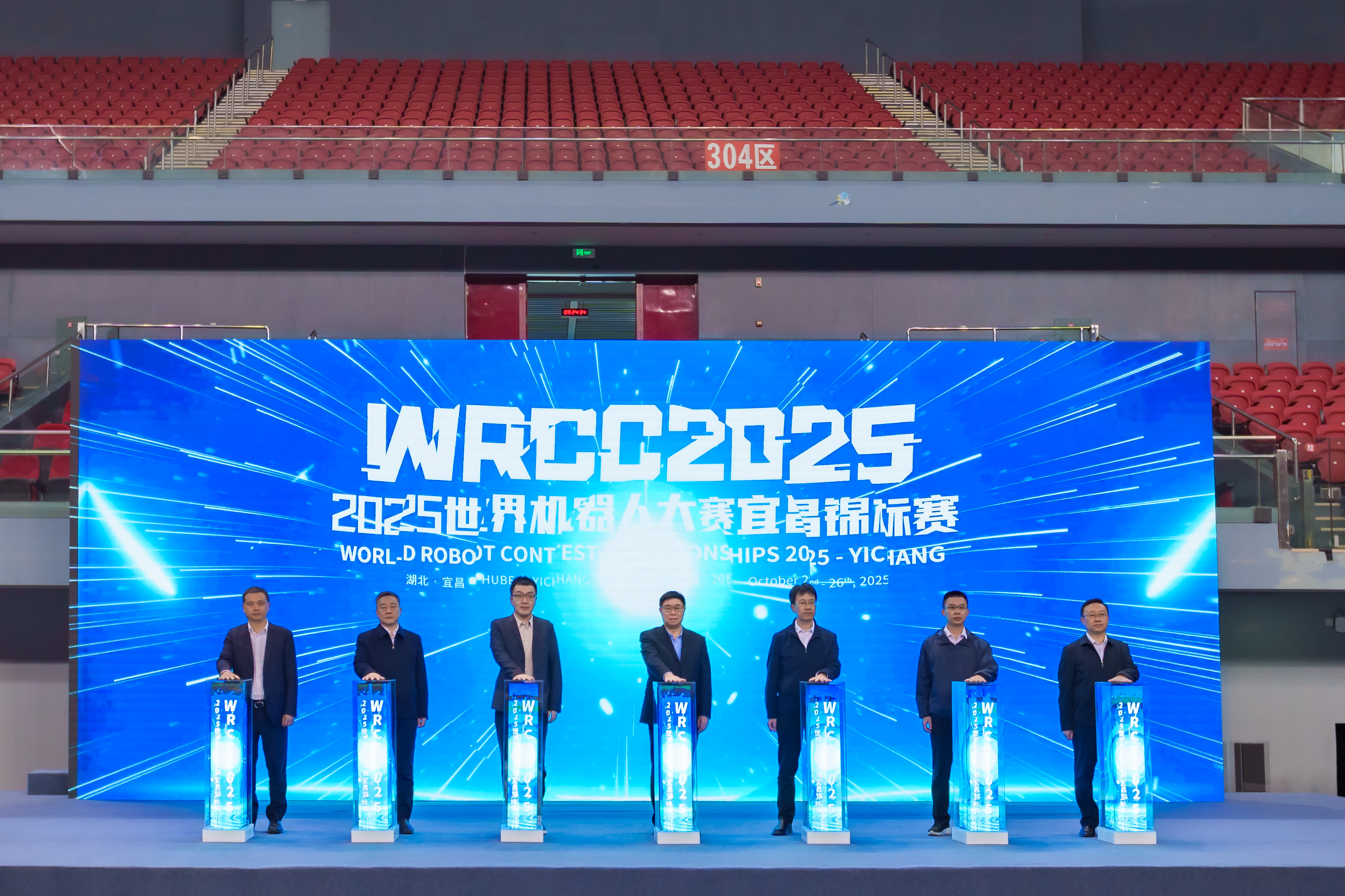领导嘉宾共同按下启动装置,标志着2025世界机器人大赛宜昌锦标赛正式启幕。