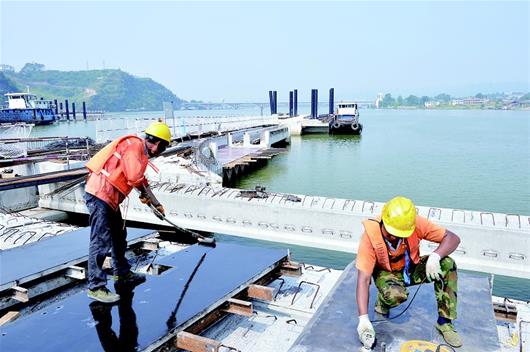 截至昨日,宜昌三峡国际游轮中心码头已完成水上桩基279根,现浇横梁76榀,预制构件安装171榀,实现总进度的65%。